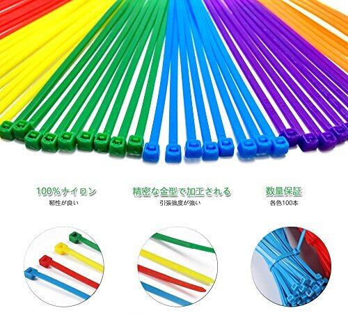 結束バンド、靭性が良いナイロン、耐候性、耐熱性、6色(100㎜、600本入)
