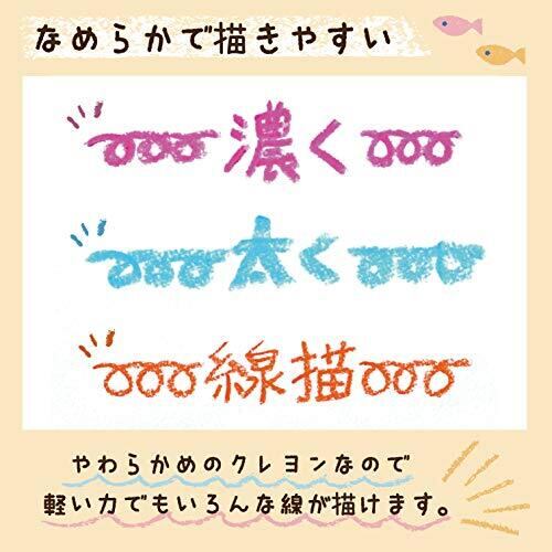 【16色】黄色・橙・薄橙・茶色・黄土色・こげ茶・赤・桃色・紫・水色・黄緑・緑・青・灰色・黒・白 【特長1】塗りやすさとなめらかさを強調した「やわらかめのクレヨン」 【特長2】力を入れずに、強い線や太い線が描ける 【特長3】太巻きで折れにくく、発色も鮮やか 【サイズ】Φ9.6×76mm/本