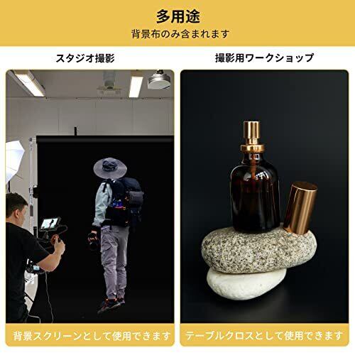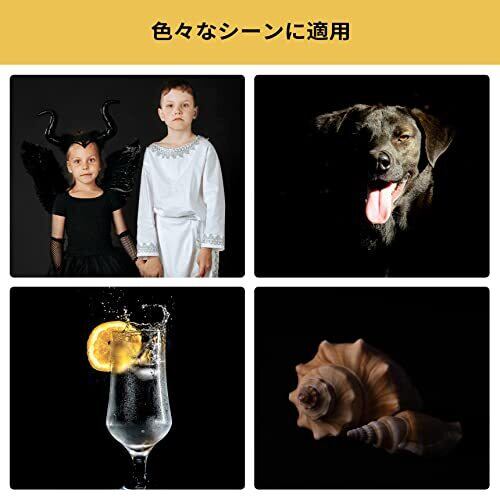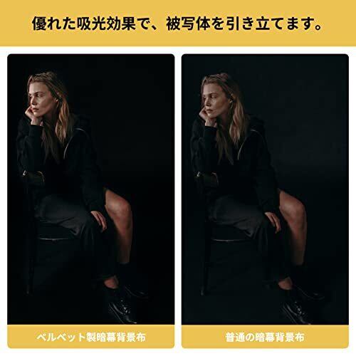 【新型な素材】一面は新型なベルベット材質、もう一面はポリエステル材質で、普通の綿製よりシワが目立たなく、柔らかくて手触り感触もよいです。良い垂れ感は素晴らしスタジオの効果を提供できます。(ご注意:汚れた場合は、手で洗うことをお勧めです。) 【無反光性】撮影専用な背景布は光の反射を抑えられ、無駄な光の反射を防ぎ、光沢感も抑え、撮影対象を自然に引き立てることができます。 【汎用性】サイズ:2Mx2M、専門撮影スタジオで最も利用できるサイズで、小物撮影、製品撮影などから人物撮影まで適用です。 【多用途】背景シートだけではなくて、暗幕や遮光 布展示会、イベントなどのテーブルクロス、幕などとして使用することができます。 【収納便利】折りたため可能でコンパクト、スタジオ、室内撮影また外出撮影も携行便利です。(折り畳んだ状態で輸送するため、シワがあるかもしれません、使用前は低温アイロンかけをお勧めです。)