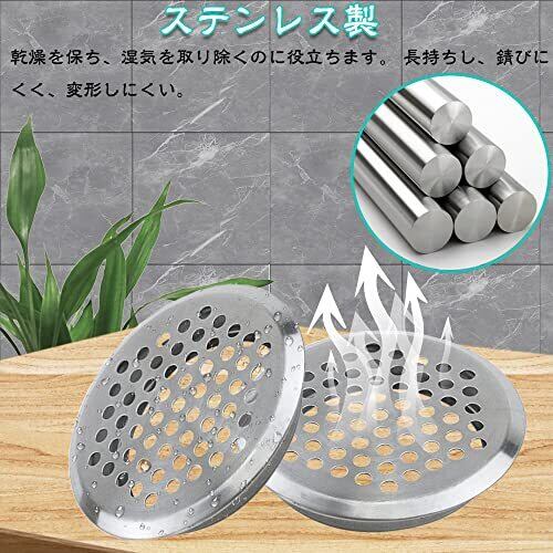 換気口 53mm丸型換気グリル 空気孔カバー 6個セット 通気口 エアベントカバー 穴エアベン ステンレス製丸型ガラリ 戸棚空気ベント 換気装置 網タイプ 幼虫/ゴキブリを防ぐ/空気を通し/カビ臭の抑制