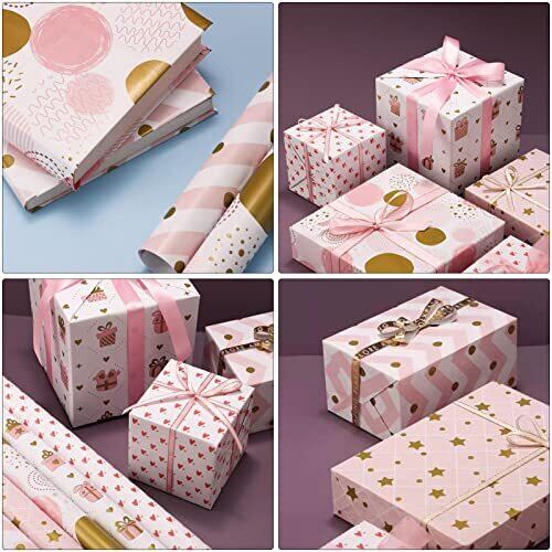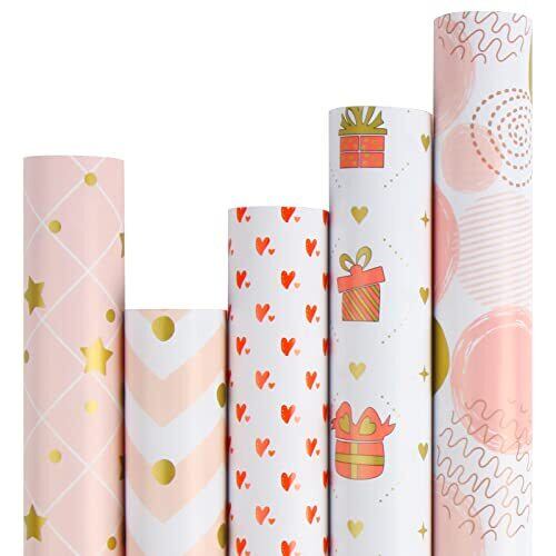 材質:コート紙 サイズ:43*300CM 数:柄違い5枚(❤ロール状で運輸します。) メリット:ロール状で運輸するので、折り目が有りません;大きいサイズ、さまざまなサイズのプレゼントを包装できます。 デザイン:ゴールドとピンクの柄が可愛いです。 特徴:つるつる感のコート紙は、発色が良く、色の再現性に優れています 幅広い用途:本やギフトボックスを包むためのラッピングペーパーとして使用でき、手帳を飾るための素材としても使用できます。 適用:プレゼント包装紙として、 クリスマス、バレンタインデー、母の日、子供の日、誕生日、ハロウィンなどいろいろなシーンにおすすめです。