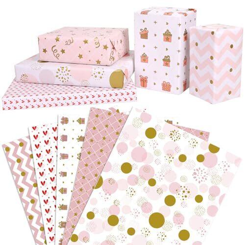 CCINEE 包装紙 ラッピング ペーパー ロールで運輸 300×43CM 包装 用 紙 大判 大きい おしゃれ かわいい デザイン プレゼント クリスマス (5枚, ピンク)