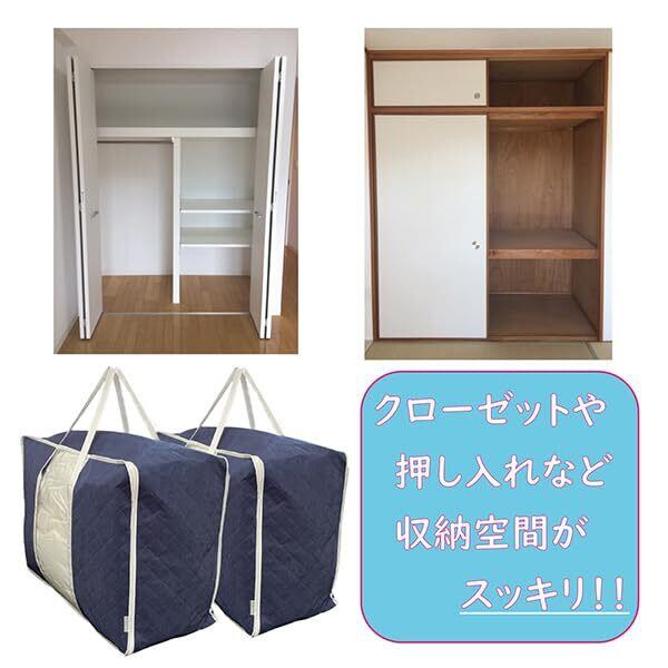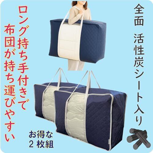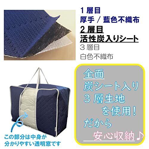 ふとん 収納袋 2枚組 イニコライフ 贅沢な 全面 活性炭シート入 立ててスッキリ収納 横収納もOK 持ち運びやすい シングル - ダブルサイズまで 自立 布団ケース 通気性の良い 厚手3層 不織布製 羽毛 布団 収納ケース 透明窓 ロング持ち手付 かさばる布団をスッキリ 布団袋 (中芯無し/藍色)