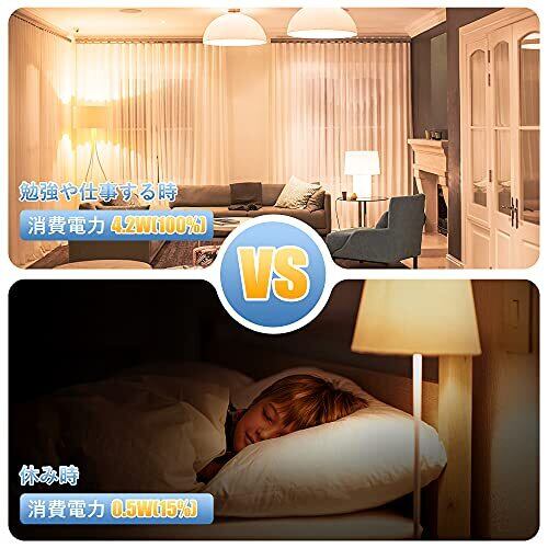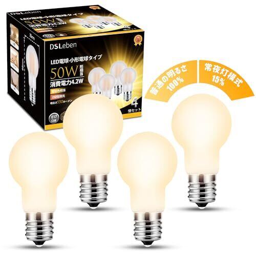 製品仕様:対応口金:E17、定格消費電力:4.2W(50W形相当)/0.5W(常夜灯相当)、定格電圧:100V 50/60Hz共用 、色温度:3000K 電球色、全光束:550lm(100%の明るさ)/30lm(15%の明るさ)、本体サイズ:Φ35*68mm。※注意:調光器と調光器具非対応 2段階切り替え:壁スイッチで明るさを切り替え、電球の点灯時はスイッチを2回押す(約3秒以内)で明るさを切り替える。使用環境に応じて明るさを調整できます。明るさ変化の順序:100%-15%。全灯モード:家庭の照明や仕事に適しています、常夜灯モード:夜寝るのに適しています。 眩しさを防ぐ:LED電球は高品質のすりガラス製で、光透過率が高く、均一な光効果があり、明るくアンチグレアです。約360°の明るさ広がる広配光設計、廊下、リビング、ダイニング、風呂場、玄関、更衣室に適用されます。 省エネ・長寿命:このLED電球の消費電力は4.2 Wだけで、伝統の50W白熱電球に相当し、従来の白熱電球より90%の消費電力を節約しています。設計寿命は20000時間で、頻繁に電球を交換する手間を減らす。 PSE認証:DSLeben クリプトン電球はPSEマーク取得しておりますので、製品の品質と安全は保証されています。LED電球は標準E17口金なので、従来の白熱電球に直接取替えられます。取付簡単、ダウンライト、天井埋め込みライト、ペンダント器具、卓上ランプなどの照明器具に使用できます。