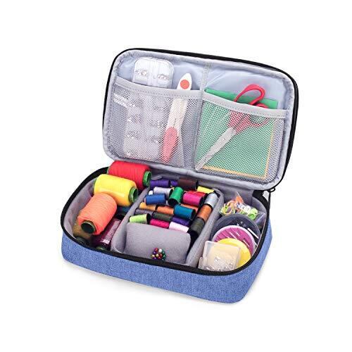 【内寸】長さ22cm x 幅13cm x 高さ6cm(裁縫バッグのみの商品です。針や裁ちばさみ等、裁縫用具は含まれておりません。) 【素材】丈夫なナイロン製の裁縫バッグです。クッション材も入ります。 【機能】ソーイングに必要な道具を収納できる二層デザインです。 【特徴】使いやすいダブルファスナーと持ち運びに便利なハンドルがあります。 【コンパクト】頻繁に旅行する友達やお母さん、大人、学生にプレゼントとしても喜ばそう!