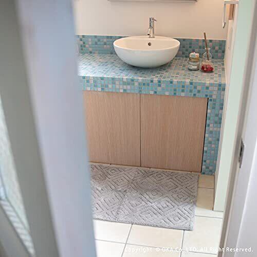 オカ(OKA) 乾度良好ピュール バスマット 約36cm×55cm アイボリー (お風呂マット 大判 浴室 おしゃれ 洗面所 足ふきマット 抗菌 防臭 吸水 速乾 洗える)