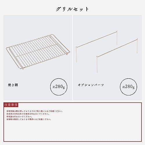 【 網 +OPセット 】 TokyoCamp 焚き火台 専用の 焼き網 と オプションパーツ のセットになります。 TokyoCamp 焚き火台 と併用していただくことで、より幅広い 焚火 飯料理やバーベキュー、焼き肉といった所までお楽しみいただけるようになります。 焼き網 は 焚火台 のフレームに引っ掛かるように設計されており、だれでも簡単に設置することができます。また、空いたスペースに付属のスピットを並べて設置し、同時に使用していただくこともできます. 【 ステンレス 製 】 焼き網 には ステンレス スチール(SUS304)を採用。耐久性に優れ、火による酸化や腐食が発生しにくく、より長くお使いいただけます. 【 コンパクト 】 オプションパーツ 、 焼き網 は取り外し可能なので、キャンパーの皆様のお好み・用途に合わせてお使いいただくことができます. 【 調理可能 】 オプションパーツ で約3cm炎との距離を近づけ、より高火力でお料理を堪能下さい!また、 焼き網 は五徳のように焚き火台の上部にセットするだけで、バーベキューや焼き肉をお楽しみいただけます。ワイヤータイプの 網 なので洗浄も簡単です. 【 ソロキャンプ 】オプションパーツ 、 焼き網 は 焚火 飯を堪能したい ソロキャンプ の皆様にはうってつけ。コンパクト で取り外し可能なので用途に合わせてお使いいただけます.