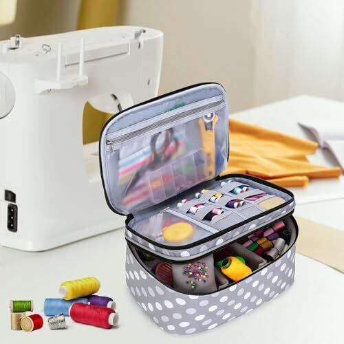 【寸法】長さ27cm x 幅18.5cm x 高さ14cm(裁縫バッグのみの商品です。針や裁ちばさみ等、裁縫用具は含まれておりません。) 【機能】ソーイングに必要な道具を収納できる二層デザインです。小分けで、お裁縫道具を細かく収納することができます。 【素材】耐久性のあるナイロン製で、中身にクッション材も入っていて、丈夫で長持ちします。 【特徴】使いやすいダブルファスナーと持ち運びに便利なハンドルがあります。 【年齢と性別を問わず】裁縫が好き、頻繁に縫う人に似合う収納ケースです。プレゼントとしてもおすすめます。
