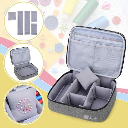 Luxja 裁縫バッグ 【※バッグのみ】 裁縫道具 収納 携帯用 裁縫箱 大容量 グレー