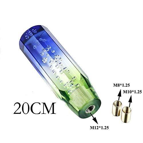 汎用 クリスタルシフトノブ 泡入り 八角 200mm バブル ゲートAT車/MT車対応 3枚アダプター付き 大半国産車対応 普通車/軽自動車/トラック ブルー+ホワイト+グリーン (20cm)