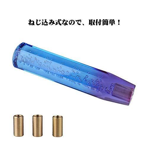 汎用クリスタルシフトノブバブル八角 200mm キラキラ透明感際立つ爽快な泡入り 3枚アダプター付きブルー+パープル | RoseRiot