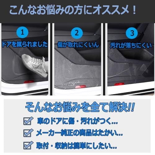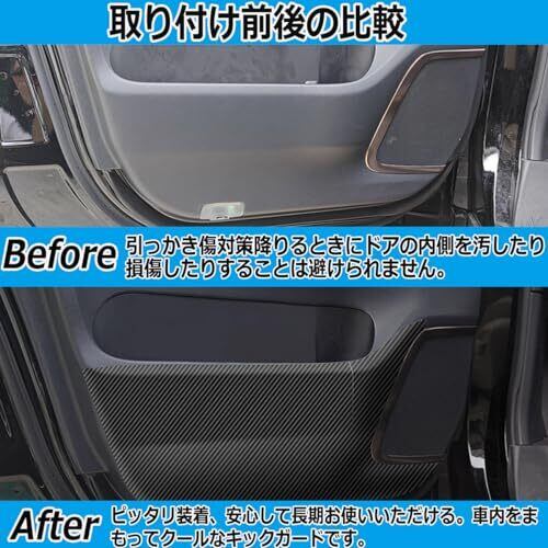 【アルファード40系 車種専用】 新型 アルファード 40系 年式:2023年(令和5年)6月~現行。ご注意:形状、年式とモデルをご確認頂いた上、お買い求めください。 【セット内容】運転席用&助手席用 2PCSセット 【高品質素材&耐久性抜群】カーボン柄の超繊皮製耐久性と表面の美観に優れた高品質の超繊皮製、カーボン柄のシボ加工をすることで、ドア内側まわりをスポーティに演出します。 【引っかき傷対策】引っかき傷対策降りるときにドアの内側を汚したり損傷したりすることは避けられません、本製品はドア内外側を守ることができます。靴のプリント、ほこりなどの 汚れ目は、雑巾で拭い取るだけ、 綺麗になりやすいです。 【取付簡単】簡単取付裏面には強力な両面テープが貼り付けられています、接着面のほこりを取り除き、取り付け位置を確認後、商品裏面の両面テープの剥離紙をはがし取り付け、しっかりと密着させ