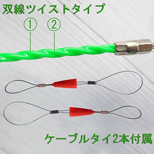 材質:PET樹脂 ステンレス。 長さ:20m ロッド線径:約4.5mm。 屋内通線・入線作業のあらゆる湾曲・コーナーに威力を発揮します。 双線ツイストタイプ - 双線ツイストタイプ 防水性、耐久性、剛直性に優れています。屋内通線 入線作業のあらゆる湾曲 コーナーに威力を発揮します。 両端にしなやかなスネークヘッドとシンプルな横穴金具を取付け、一つの製品で作業に応じて使い分けていただけるようにしました。 配線用 - 屋根裏などに配線、通線、入線専用ツイスト形状のワイヤー。細径菅の中にすでにケーブルがある場合でも、配管がストレートであれば問題ありません。簡単に通線できました。