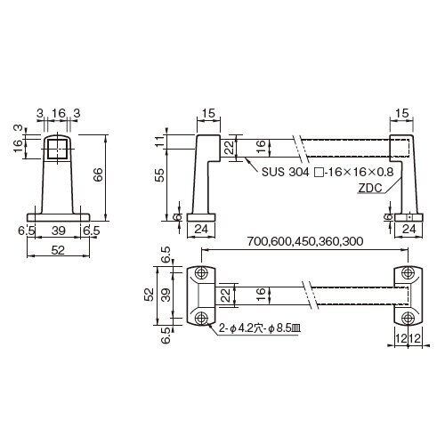 材質:SUS304・ZDC 仕上げ:研磨・クロームメッキ 付属部品:SUS十字穴付丸皿木ネジ3.8×32:4本