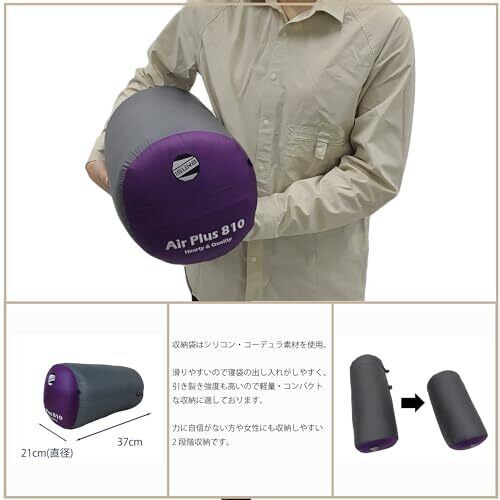 生地 表/ナイロン100% 裏/ナイロン100% 平均重量 1,280g 羽毛量 810g(90/10 820フィルパワ-) 最大長 84(肩幅)×208(全長)cm 収納サイズ φ21×37cm 最低使用温度:-25℃