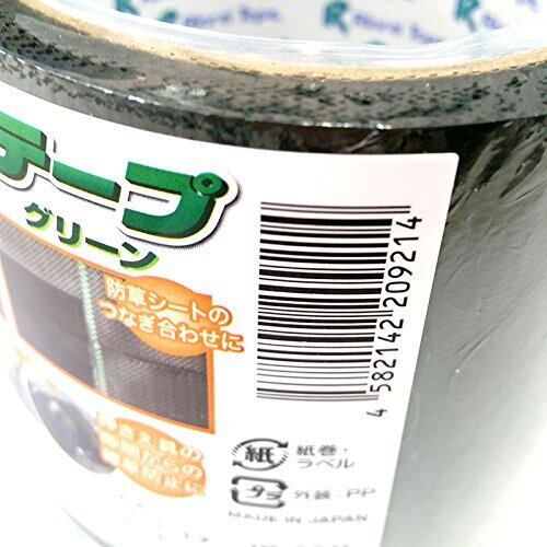 補修テープ 特徴:クロスタイプ、不織布タイプ兼用 仕様:グリーン 用途:防草シートの補修、つなぎ合わせ、押さえ具の隙間からの雑草防止に 規格:幅80mmx長さ10m 材質:ポリエチレン