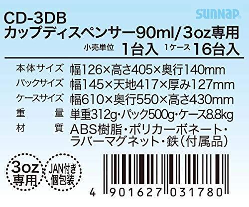 サンナップ【紙コップディスペンサー 90ml/3oz サイズ専用】 衛生保管 紙コップ収納ケース 簡単押しボタン式 マグネットorネジ取付け カップポン CD-3DB