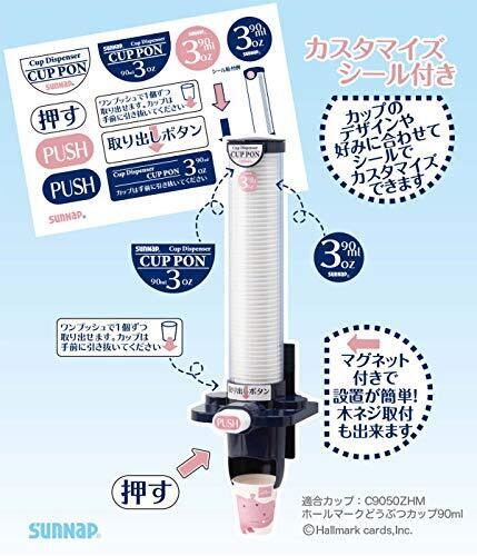 【サンナップ製紙コップに対応】サンナップ製の90mlカップに対応します。 【マグネットサイズ】横60mm 縦140mm 【ネジ穴までの幅】78mm 【取付け・取出し簡単】マグネットかネジで簡単に取り付けられます。1個ずつ取り出せるワンプッシュ押しボタン式 【適合カップのご紹介】適合カップ品番:C9050ZHM C9050JWD C90100AW C90100MZAW