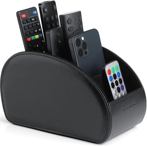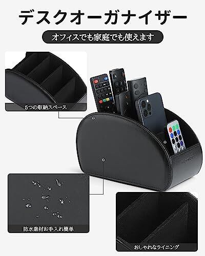 Vlandoリモコンラック PUレザー 大きいサイズ リモコン収納 テーブル 5格仕切り リモコンスタンド おしゃれ 防水 多機能収納ボックス 大容量 文房具 卓上小物 ブラック