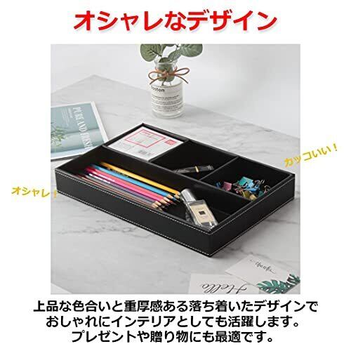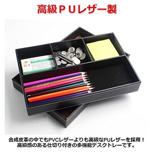 高級レザー トレー ブラウン デスク 収納 小物 仕切り 収納ケース PUレザー リビング オフィス おしゃれ