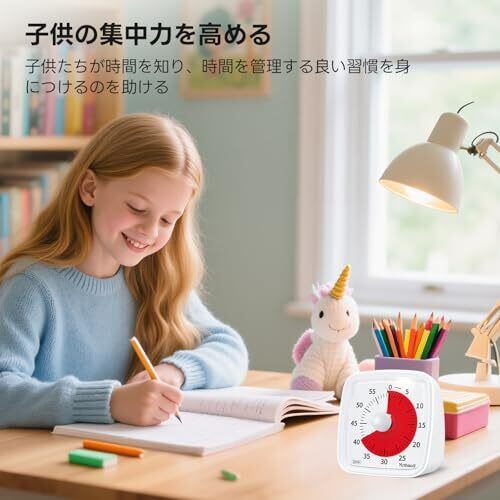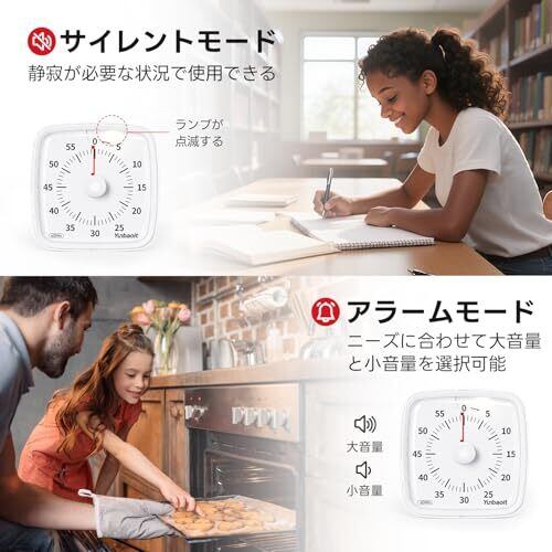 効率的な時間管理ツール : あなたやあなたのお子さんは、先延ばしや時間感覚のなさに悩んでいませんか?Yunbaoitタイマーは時間感覚を養うことができます。このタイマーは視覚的な時間管理ツールで、色のついた円盤が消え、時間がはっきり消えるので、時間が目に見えるように感じられます。時間を感じることで、勉強や仕事を効率的に進めることができます。 簡単設定 設定: ノブを時計回りにひねるだけで、必要なカウントダウンを簡単に設定できます。カラーディスクが「0」になったら終了です。その後、ベルが鳴り、時間の終了を知らせます。 ストップアラーム: ビジュアルタイマーには3つのリングモードがあります:消音、低音、大音量。あなたは必要なモードを選択することができます。他のタイマーに比べ、このタイマーは呼び出し音のタッチ一時停止機能があります。ベルが鳴ると、30秒間鳴り続け、自動的にオフになります。アラーム音が短すぎたり長すぎたりしないように、上のボタンを押して一時停止することができます。 夜間ライト付き消音モード: このアップグレード版タイマーは特別に夜間ライトモードを追加しました。ミュートを選択すると、ナイトライトモードが選択できます。時間が来たら、ナイトライトが点滅します。図書館での勉強やカフェでの仕事など、静かな公共の場に最適です。また、薄暗いときは、上部のライトボタンをタッチして、カウントダウンの時間を見ることができます。 多用途: タイマーは軽量でコンパクトです。持ち運びに便利です。様々なシーンで使えます。例えば、料理、お菓子作り、学習、フィットネスなど。あなたの生活の良いヘルパーになります。キッチンタイマー、勉強タイマー、仕事タイマーとして活躍します。製品に何か問題があれば、私たちに相談することができます。私たちはそれを解決するために努力します。