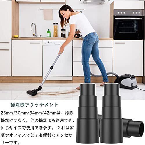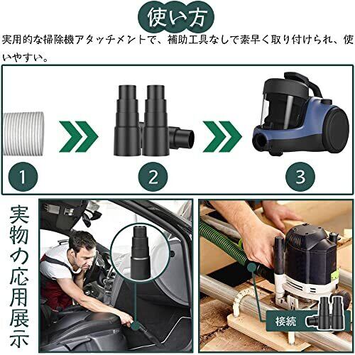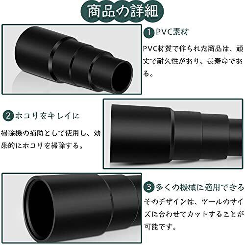 仕様:掃除機の電動工具アダプター3個セット 素材:PVC モデル番号:四段のジョイント カラー:ブラック サイズ:全長(103mm) ,下段から上段へ,外径(42mm/34mm/30mm/25mm)内径(35mm/31mm/28mm/21mm)高い(42mm/19mm/19mm/20mm)注意:事前に測定して機械のサイズを確認してください。 PVC材質で作られた商品は、頑丈で耐久性があり、長寿命である。掃除機の補助として使用し、効果的にホコリを掃除する。掃除機ホース用の汎用アダプタで、各種ゴミの掃除に役立ちます。 多くの機械に適用できる,掃除機アダプタを各種電動工具に接続します。そのデザインは、ツールのサイズに合わせてカットすることが可能です。操作が簡単で、ホースを必要な場所に接続し、固定がしっかりしていることを確認するだけで使用できます。 掃除機付属品の直径はそれぞれ25mm/30mm/34mm/42mmで、フーバー/ウェット&ドライフーバー/ワークショップフーバー/マルチファンクションフーバーなどの機械に適しています。 また、丸鋸、ジグソー、木製鋸、サンダー、その他の同じサイズの機械など、掃除機と同じサイズの他の機器にも適用できます。これは家庭やオフィスに非常に便利なアクセサリです。