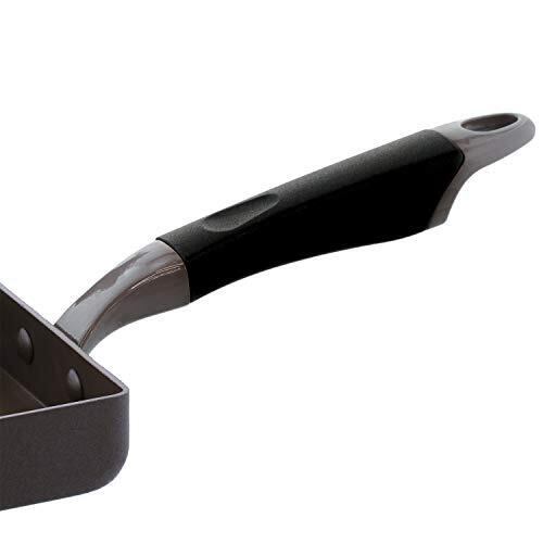 サイズ:幅13.5×奥行36×高さ8.5cm 重量:0.37kg 素材:本体/アルミニウム合金 オリジナル縁巻き深型形状、(エッグパンは除く)、内面/ダイキンekダイヤモンドコートブラウンカラー(耐摩耗性試験30万回)、外面/耐熱焼付塗装、底面/ステンレス(sus430) 0.4mm圧着、ハンドル/フェノール樹脂 原産国:中国 板厚:2.3mm、高さ:33mm