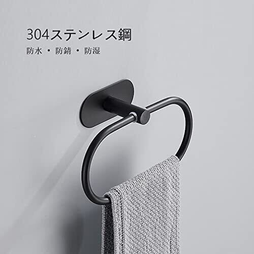 タオルリング 粘着 タオル掛け タオルかけ ステンレス たおるかけ おしゃれ タオルハンガー 壁掛け キッチン お風呂 バスルーム (20CM, ブラック)