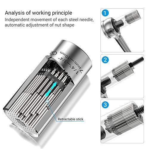 【基本仕様】対応できるナット径:7-19mm,1/4~3/4インチ。 全長:53mm 外径:25.4mm。 【多機能】:すべての三角形、四角形、六角形、TORX形、翼ナット、クランプボルトと金属リング、その他すべての多角形ナットに適用します。 【材質】クロムバナジウム鋼素材を採用、 本ユニバーサルソケットはクロムバナジウム合金鋼材料で製造され、硬さと耐磨耗性は抜群です。強い圧力にも耐えられ、長時間使っても大丈夫です。 【作業に便利】ナットやフックの形状に自動で合せて、どんなネジでも簡単に締めたり緩めたりできます!多数のソケットを替えずに作業ができ、時間短縮・効率アップに繋がります。 【12ヶ月安心保証】12ヶ月の品質保証期間内で、何か問題がございましたら、返金或いは再送させていただきます。ぜひメールにで連絡をお願い致します。私達は顧客のために便利に24時間のカスタマーサービスを提供します。