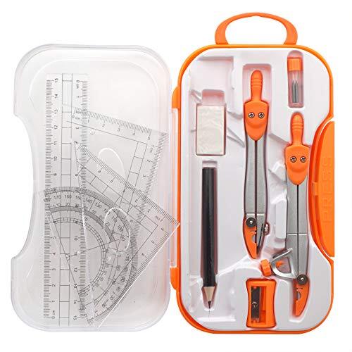 コンパスセット幾何学コンパス数学セット、直定規 半円分度器 しゴム 三⾓定規 算数School Compass、オレンジ 【収納便利】専⽤収納ケース付きで⽚付けしやすいです。ケースは軽量かつコンパクトなので、持ち運びにも⼤変便利です。 【使⽤安全】コンパスは鋭い先端にカバーが付くため、より安全的に使⽤します。 【広い⽤途】学⽣⽤、事務に図⾯作成⽤など幅広く使われています。新学期にお⼦様へのプレゼントには適合です。 【セット内容】コンパス*1、直定規*2、分度器*1、三⾓定規*2、替芯*1、消しゴム*1、鉛筆シャープペ*1、短い鉛筆 *1