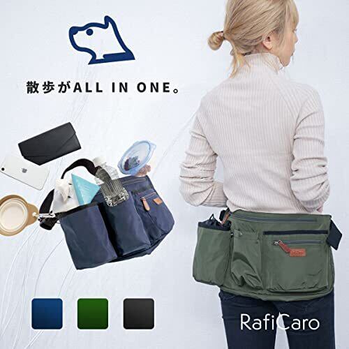 【ブランド】 RafiCaro - ラフィカロ - 【スペック】 ・メイン収納×1 ・マナーポーチ×1 ・フリーポケット×1 ・マグネット式ポケット×1 ・ファスナーポケット×1 ・Dカン×1【サイズ】 ・縦 240mm × 横 430mm × 厚み 120mm ・重さ 285g【素材】 ・ナイロン 【必要なもの全部入れて手ぶらで散歩】 お散歩に必要な物を全て収納。いつもの物をいつものポケットに。 マナーポーチは取り外し可能なので、丸洗いで清潔に保てます。 マグネット式ポケットは片手でおやつを取り出せるカンタン開閉。 付属のDカンにリードを係留すれば両手が空きます。人気 ブランド ならではのこだわりがつまったアイテムです。 【耐久性に優れたナイロン素材】 ナイロン素材でお手入れも簡単。 バッグ裏面は通気性の良いメッシュ素材で、 夏のお散歩も快適に。 本皮をタグとファスナーに使用しています。 ウエストベルトは62~100cmまで調節できるので、 ご家族皆様でお使いいただけます。犬の体型や動作など、様々な諸条件により各パーツの外れ、 破損する場合がございますので、飼い主の責任において十分な安全管理を行ってください。 メンズ レディース 問わず人気の3カラーをラインナップ。かわいい、おしゃれ、クール、カジュアル、ビジネス、フォーマルなどスタイルに合わせてお選び頂けます。 記念日 などの プレゼント 母の日 父の日 バレンタインデー ホワイトデー 誕生日 クリスマス 等の ギフト にも おすすめ です。black ブラック / navy ネイビー / green グリーン