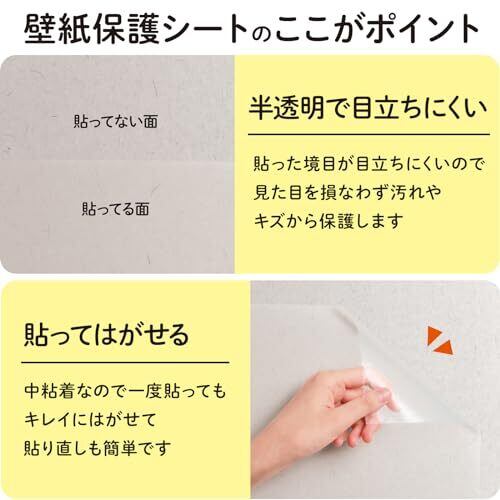 コモライフ 目立ちにくい 壁紙保護シート (44.5cm×2.5ⅿ) 壁紙 保護 半透明 傷 落書き ペット 対策 貼り直しOK