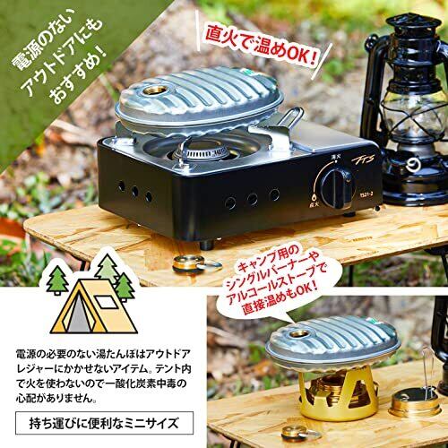 直火で温められる、小さな湯たんぽ。 [サイズ]約14×17×高さ5.3cm [重量]約265g [容量]約600ml 直火使用可(IHは使用できません)