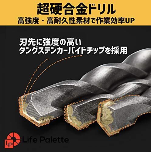 コンクリート・ブロック・レンガ・モルタル等の穴あけ作業に使えるコンクリートドリル10本セットです。 使用頻度の高いサイズを激選!お求めやすい価格でセットにしました。 刃先はタングステンカーバイトチップ使用で耐久性、切削スピードがアップします。滑り止め設計で実用性も実用性も兼ね備えております。 滑り止め設計で実用性も実用性も兼ね備えております。材質:超耐熱特殊鋼 刃先:タングステンカーバイトチップ シャンク:SDSplus 6×150mm (有効長:約80mm)、8×150mm (有効長:約80mm)、10×150mm (有効長:約80mm)、12×150mm (有効長:約80mm)、14×150mm (有効長:約80mm)、12×200mm (有効長:約120mm)、14×200mm (有効長:約120mm)、16×200mm (有効長:約120mm)、18×200mm (有効長:約110mm)、20×200mm (有効長:約110mm)・・・・計10本