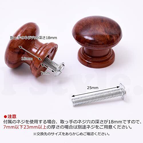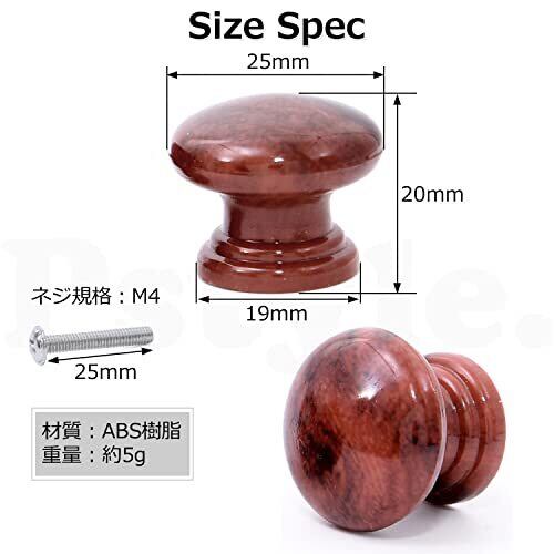 【専用ネジ付き取っ手で簡単DIY】 Pstyle.木目調つまみは、取り付け用ネジがついた10個セットです。クローゼットやキャビネット、キッチン、食器棚、タンスなどの家具とも相性がいいシンプルなデザインです。 【選べる4タイプ】 ノブは4種類のタイプから家具の色味の合わせて選ぶことができます。ABS樹脂素材により、独特の光沢があるデザインが可能になり、耐久性にも優れた取っ手です。 【簡単リメイク】 木目調の取手のため、木製の家具によくなじみます。ツマミはアンテーク調の家具に合う色から薄い色まで選択できます。家具のカラーに合わせてお選びください。 【対応する引き出しやタンス】 付属のネジを使用する場合、とってのネジ穴の深さが18mmとなります。ひきだしの厚さが7mm以下23mm以上の場合、別途ネジをご用意ください。*交換先のサイズをあらかじめご確認ください。 【仕様】 材質:ABS樹脂。 重量:約5g。