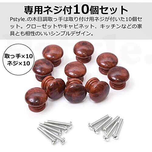 Pstyle. 取っ手 つまみ 木目 引き出し タンス 家具 扉 ノブ 10個セット PST-119 (タイプA)