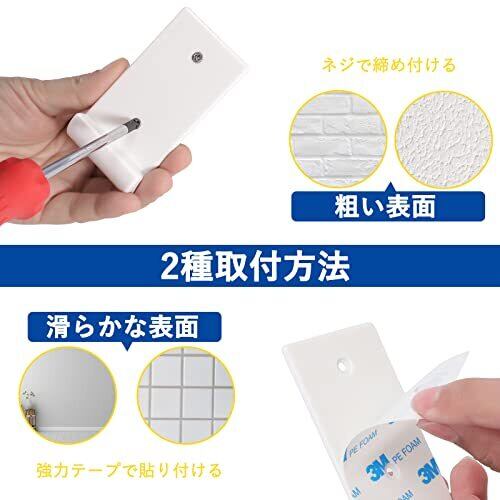 サイズ:8.8×4.5×1.8cm 本体重量:約14g 素材・材質:ポリエチレン 耐荷重:30~50kg 付属:両面テープ、スクリュー。タイル、ガラス、大理石、金属、ツルツルする木製表面でご利用ください。石膏、セメント、壁紙、粉壁など粗い表面で、釘をご使いください。