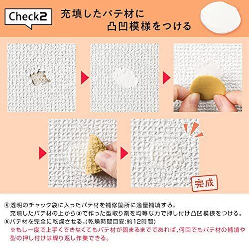職人も愛用している本格クロス補修セット! 型取りができるので凸凹クロスも簡単によみがえる! パテ材に絵具を入れて練れば着色ができる◎ 業者を呼ぶには小さな欠け・キズ・めくれを自分で補修! 【製造国:日本】セット内容:A剤・B剤/約5g パテ材/約3g