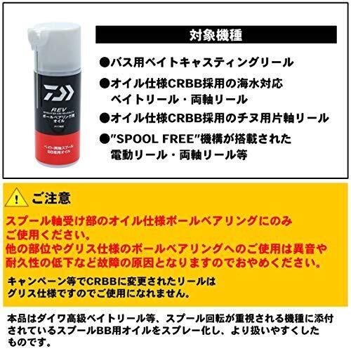 ■ダイワ REVボールベアリング用オイル■内容量:50ml■ベイト/両軸リールのスプールボールベアリング専用■純正ならではの潤滑性と耐久性に優れ、CRBB採用のソルト用ベイトにも使用可能。