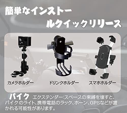 【サイズ】:バー長130mm、有効長100mm、バーの径22mm、重さ253g 【素材】:バー部分はアルミ合金製、ステー部分は鉄製、耐食性と耐久性があります。 【簡単取付】:付属品の取付位置とエクステンションバーの取付角度を確認します。ネジのバックルは耐久性があります。 高品質のネジ、二重保護を使用してください。 六角レンチを装備し、着脱、使用、調整が簡単です。 【エクストラスペース】スマホホルダー、カメラホルダー、ドリンクホルダーなどをクリップして、ハンドルバーのスペースを広げるために使用できます。 【技適認証済:安心な6ヶ月保証サポート】初期不良、自然故障等、通常使用にかける不具合に保証対応させていただきます。
