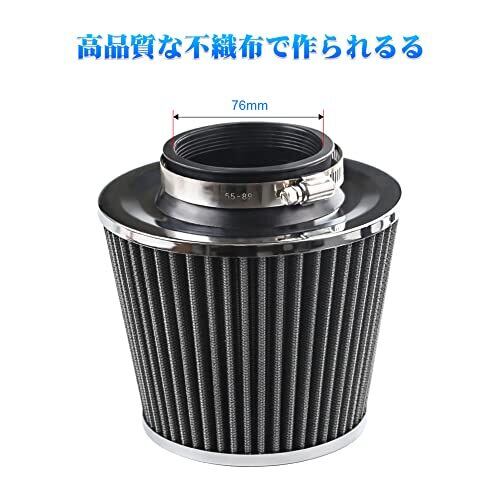 エアフィルター 76mm 吸気管 フィルター 高流量高冷風 自動車用 アルミ製エアインテークパイプ 汎用