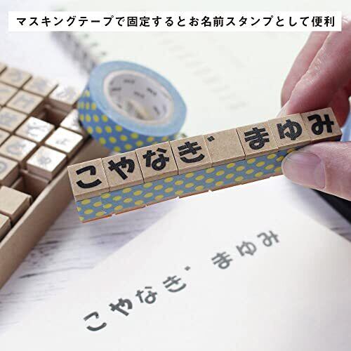 ひらがな文字の1文字スタンプ お名前スタンプや学習用としても お手紙やスクラップブック、自由に使えます 天然ゴムと台には廃材などを使用し環境に配慮 パッケージは1文字づつ収納ででき紛失を防げます パッケージデザインもおしゃれ、プレゼントにも
