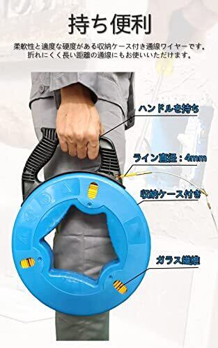 【通線ワイヤー】長さ45m、径が4mmのワイヤーなので細くて長い電線管でも対応可能。接続口は金属製でネジにより取り外しが可能です。 【通線収納ケース】取手付きなので持ち運びにも便利です。ワイヤーがコンパクトにケースに収納されているので作業がはかどります。 【作業時間が省力化】配線通し ワイヤーは柔軟性と適度な硬度がある収納ケース付き、 物凄く通線し易い! 【通線・入線専用ワイヤー】ハンドルを持って前に回してケーブルを出し、後ろに回してケーブルをしまうことができる簡単仕様です。 【安心サポート】もし配線ワイヤー何が不満足のところがありますが、ご遠慮なく連絡ください。