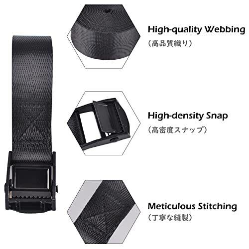 TRIWONDER 荷締めベルト ラッシングベルト 多用途 タイダウンベルト 結束バンド 梱包 固定バンド 荷締機 自動車 バイク Lashing Strap 地震対策グッズ (2m, ブラック - 25mm)