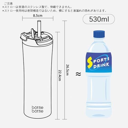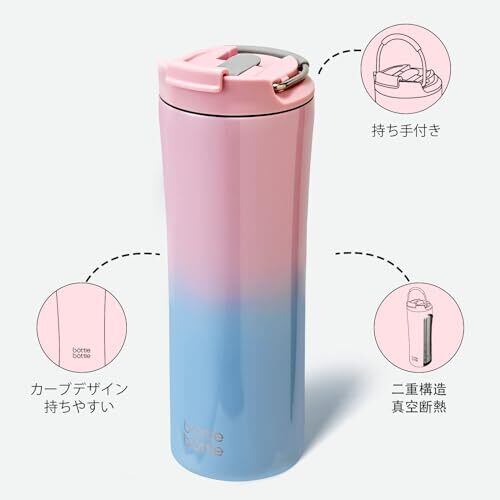 タンブラー 530ml 水筒 真空 断熱 保温 保冷 ステンレス 穴あるフタ付き ストロー ボトル 濡れない 結露しない 持ち手付き 直飲み ピンク ブルー BOTTLE BOTTLE
