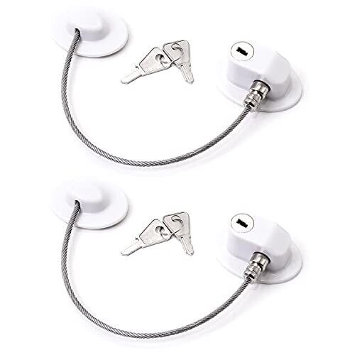 Pstyle. ドア ロック 冷蔵庫 引き出し 窓 室内 鍵 穴あけ不要 PST-077 (2, ホワイト)