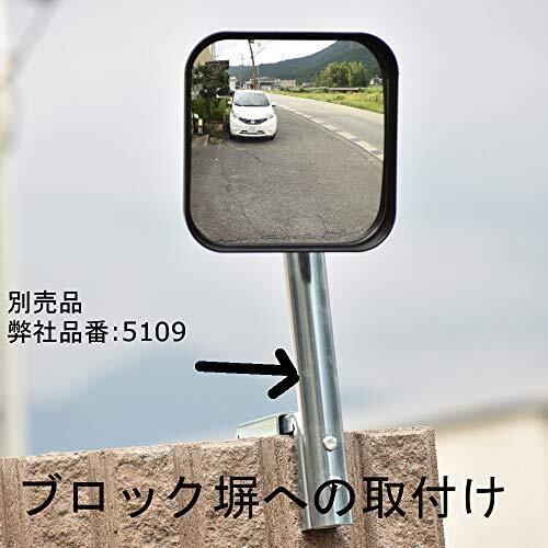 ガレージまわりの安全確認・防犯に ミラー形状:角 視認距離:~約5m 曲面率:450R サイズ:約150×150mm