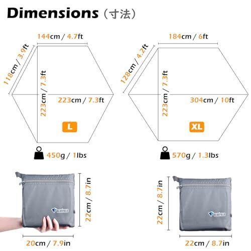 TRIWONDER 六角形 タープ グランドシート ヘキサ ワンポールテント 防水 テントシート サンシェード キャンプ フットプリント ピクニック マット ハンモック用 天幕 (グレー - L)