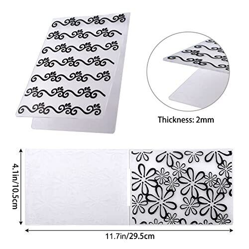 WANDIC 8個 エンボス加工フォルダー, プラスチックエンボステンプレートクラフトペーパーカードスクラップブックの装飾用エンボスステンシルを作るDIYクラフトを作る