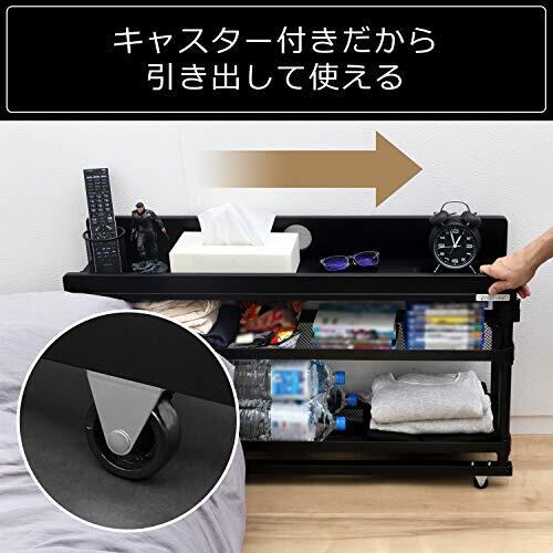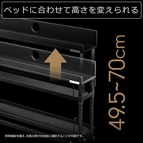 サイズ:幅 97cm × 奥行き 22cm × 高さ 59.5~80cm 今あるベッドに後付けして使える棚付きヘッドボード。 スマホや眼鏡、目覚まし時計などの小物を置いたり、ストックの保管に便利です。 キャスター付きで奥に収納したものを取り出しやすい。 49.5~70cmの昇降機能付き。ベッドに合わせて高さ調節が可能です。